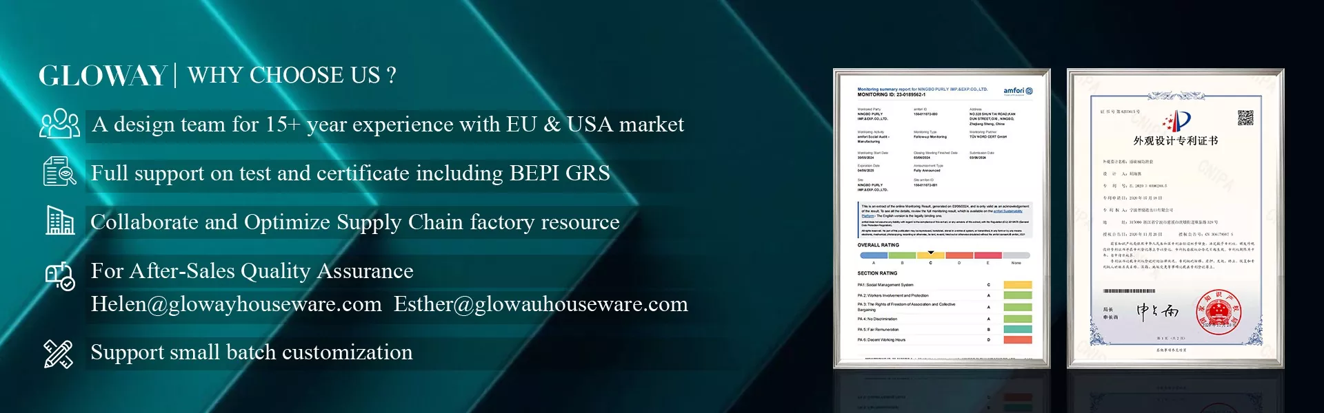 Ningbo Purly Imp. & Exp. Tá Co. Le limistéar saoráide de 3000 m² agus i S o 9 0 0 1 agus B S C I deimhniú, is féidir linn aon riachtanais iniúchta monarchan a theastaíonn uait a chomhlíonadh.