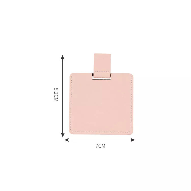 Tá clúdach leathair PU bog agus dromchla cruach dhosmálta shatterproof ar an scáthán póca cárta creidmheasa seo. Oireann a dhearadh caol, iniompartha go héasca i sparán nó i málaí, atá oiriúnach le haghaidh tadhaill ar-an-dul. Déanann lógó agus dathanna saincheaptha é foirfe le haghaidh bronntanais nó brandáil.